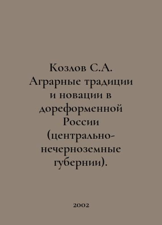 Kozlov S.A. Agrarian traditions and innovations in pre-reform Russia (central non-Black Earth governorates). In Russian /Kozlov S.A. Agrarnye traditsii i novatsii v doreformennoy Rossii (tsentralno-nechernozemnye gubernii). Series: Economic History: Documents, Studies, Translations. You are welcome to reach out to us for a detailed description of the copies currently available. Delivery of this book may take longer than usual including extended processing and pre-shipping time, no expedited shipping is available. Please advise us if you have a set date or a deadline to receive your order.SKUalb734bd01f0b5824ae