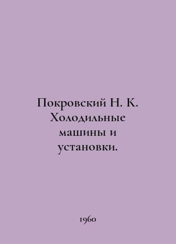 Pokrovsky N. K. Refrigeration machines and units. In Russian /Pokrovskiy N. K. Kholodilnye mashiny i ustanovki. A textbook for technical schools. M Pishchepromyzdat 1960.You are welcome to reach out to us for a detailed description of the copies currently available. SKUalb73846a628c03040f.