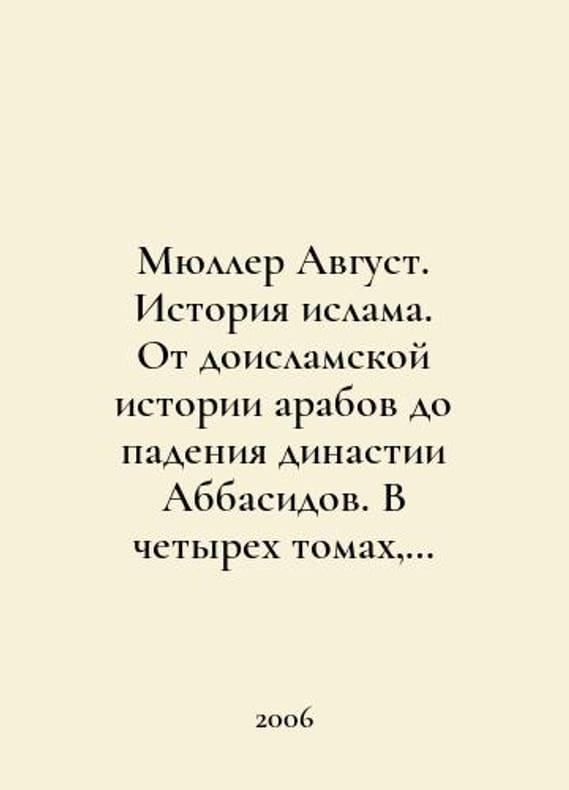 Mueller August: The History of Islam: From the Pre-Islamic History of the Arabs to the Fall of the Abbasid Dynasty. In four volumes, two books. Book 1. Volumes I, II. In Russian /Myuller Avgust. Istoriya islama. Ot doislamskoy istorii arabov do padeniya dinastii Abbasidov. V chetyrekh tomakh, dvukh knigakh. Kniga 1. Toma I, II. Series: A Classical Thought. Translated from German. Moscow. AST. Astrel. 2006. You are welcome to reach out to us for a detailed description of the copies currently available. Delivery of this book may take longer than usual including extended processing and pre-shipping time, no expedited shipping is available. Please advise us if you have a set date or a deadline to receive your order.SKUalb7528925962bf9007