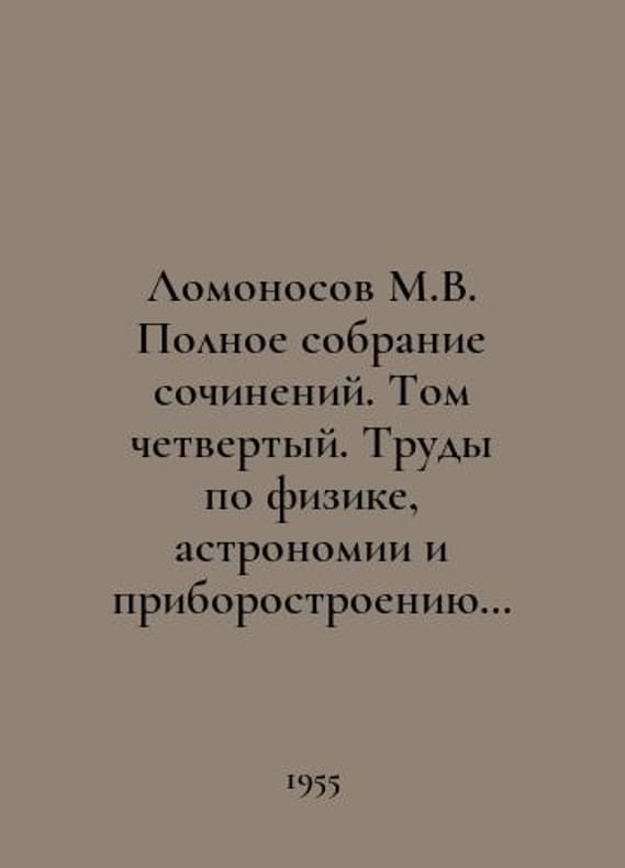 Lomonosov M.V. Complete collection of essays. Volume Four. Works on Physics, Astronomy and Instrumentation 1744-1765. In Russian /Lomonosov M.V. Polnoe sobranie sochineniy. Tom chetvertyy. Trudy po fizike, astronomii i priborostroeniyu 1744-1765 gg. USSR Academy of Sciences M.-Leningrad Publishing House of the USSR Academy of Sciences 1955.You are welcome to reach out to us for a detailed description of the copies currently available. SKUalb753901266c6b4981.