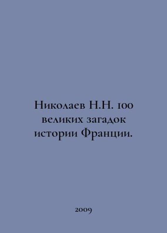 Nikolaev N.N. 100 great mysteries of French history. In Russian /Nikolaev N.N. 100 velikikh zagadok istorii Frantsii. Series: 100 great. Moscow: The Council. 2009 year. You are welcome to reach out to us for a detailed description of the copies currently available. SKUalb757fc3280fce1485.
