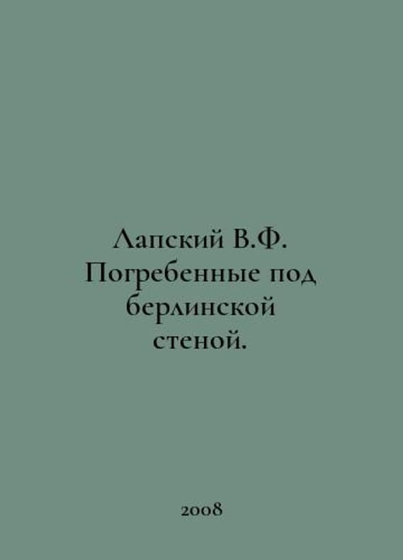 Lapsky V.F. Buried under the Berlin Wall. In Russian /Lapskiy V.F. Pogrebennye pod berlinskoy stenoy. Series: Secrets of the Soviet Era, M Veche 2008. You are welcome to reach out to us for a detailed description of the copies currently available. Delivery of this book may take longer than usual including extended processing and pre-shipping time, no expedited shipping is available. Please advise us if you have a set date or a deadline to receive your order.SKUalb7591db08bd1870e1