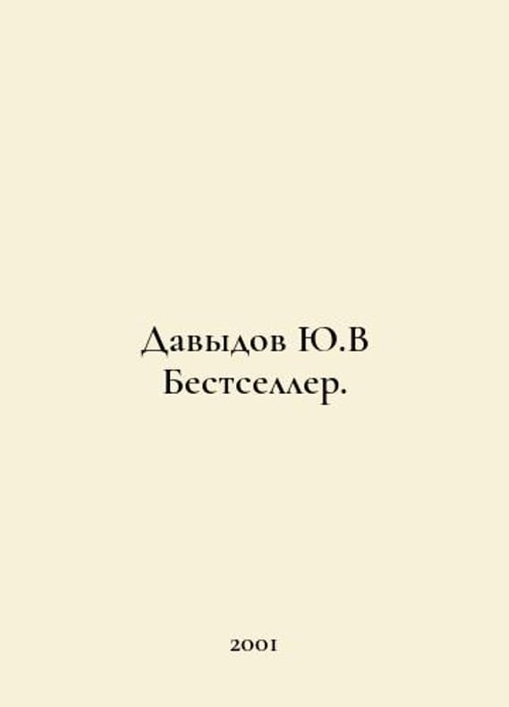 Davydov Yu.V Bestseller. In Russian /Davydov Yu.V Bestseller. Series: Modern Russian Prosaics. M. Vagrius. 2001. You are welcome to reach out to us for a detailed description of the copies currently available. Delivery of this book may take longer than usual including extended processing and pre-shipping time, no expedited shipping is available. Please advise us if you have a set date or a deadline to receive your order.SKUalb7602246e3f3be635