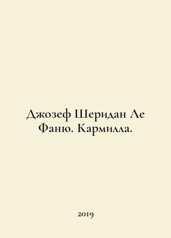 Joseph Sheridan Le Fanu. Carmilla. In Russian /Dzhozef Sheridan Le Fanyu. Karmilla. Kharkiv Exmo 2019..You are welcome to reach out to us for a detailed description of the copies currently available. Delivery of this book may take longer than usual including extended processing and pre-shipping time, no expedited shipping is available. Please advise us if you have a set date or a deadline to receive your order. SKUalb7674708542335af3