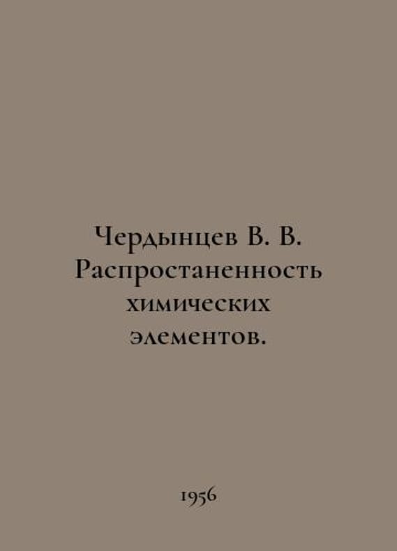 Cherdytsev V. V. Distinction of chemical elements. In Russian /Cherdyntsev V. V. Rasprostanennost khimicheskikh elementov. M. State Publishing House of Techno-Theoretical Literature 1956..You are welcome to reach out to us for a detailed description of the copies currently available. Delivery of this book may take longer than usual including extended processing and pre-shipping time, no expedited shipping is available. Please advise us if you have a set date or a deadline to receive your order. SKUalb7682c1995e336e7d