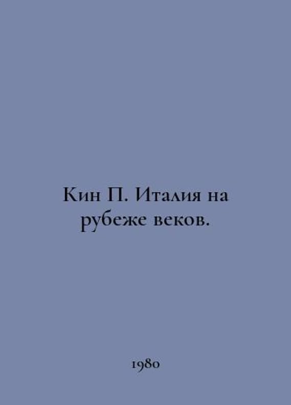 Kin Italy at the turn of the century. In Russian /Kin Italiya na rubezhe vekov. M Science 1980. You are welcome to reach out to us for a detailed description of the copies currently available. Delivery of this book may take longer than usual including extended processing and pre-shipping time, no expedited shipping is available. Please advise us if you have a set date or a deadline to receive your order.SKUalb76847092ea26d18e