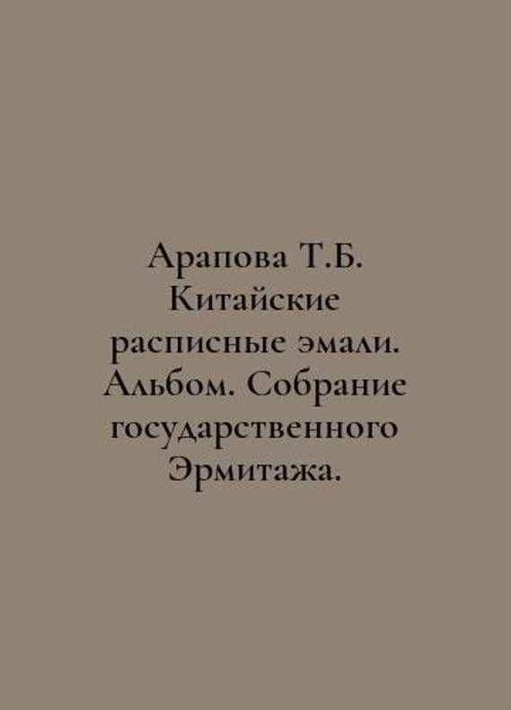 Arapova T.B. Chinese painted enamels. Album. Collection of the State Hermitage. In Russian /Arapova T.B. Kitayskie raspisnye emali. Albom. Sobranie gosudarstvennogo Ermitazha. M. Art. 1988. 292 You are welcome to reach out to us for a detailed description of the copies currently available. SKUalb76fa244edb0cd506.
