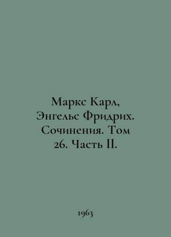Marx Karl, Engels Friedrich. Works. Volume 26. Part II. In Russian /Marks Karl, Engels Fridrikh. Sochineniya. Tom 26. Chast II. Second Edition. Ill.M Politizdat 1963.You are welcome to reach out to us for a detailed description of the copies currently available. SKUalb7705298d8d68001f.