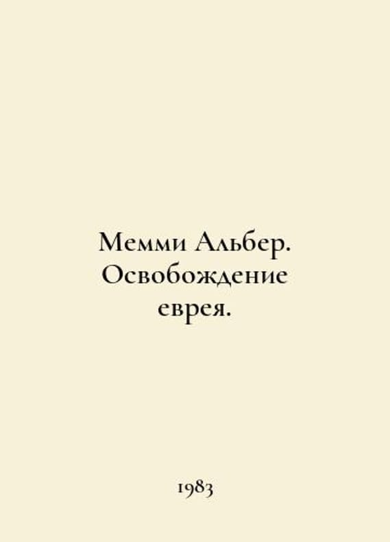 Memmy Albert: The Liberation of the Jew. In Russian /Memmi Alber. Osvobozhdenie evreya. Israel. Aliya Library, 1983. 301 p. We have thousands of titles and often several copies of each title may be available. Please feel free to contact us for a detailed description of the copies available. SKUalbddbd209ae2389843.