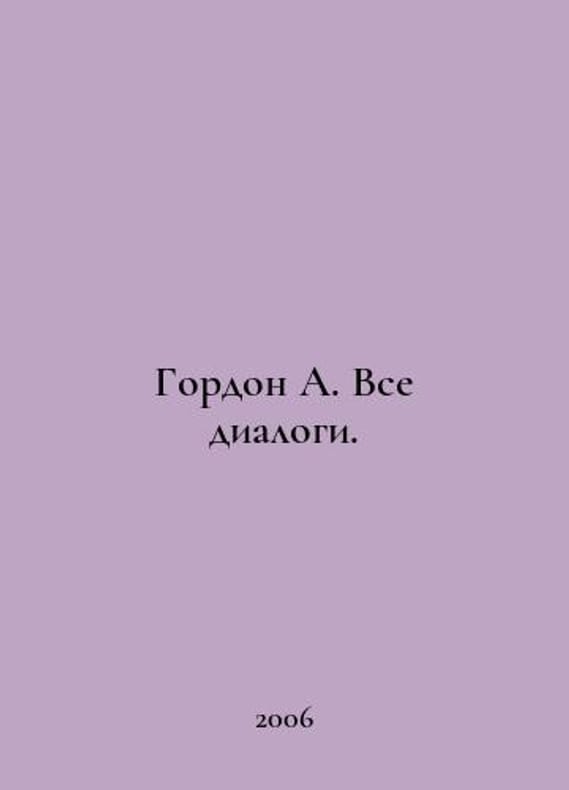 Gordon A. All dialogues. In Russian /Gordon A. Vse dialogi. Gordons 45 most rated dialogues with eminent specialists M. Preference 2006..You are welcome to reach out to us for a detailed description of the copies currently available. Delivery of this book may take longer than usual including extended processing and pre-shipping time, no expedited shipping is available. Please advise us if you have a set date or a deadline to receive your order. SKUalb77d3396601047275