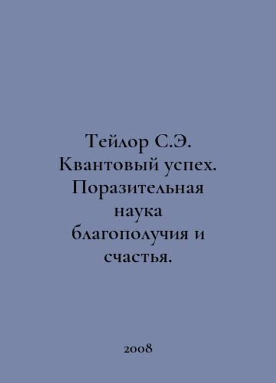 Taylor S.E. Quantum Success: The Amazing Science of Well-Being and Happiness. In Russian /Teylor S.E. Kvantovyy uspekh. Porazitelnaya nauka blagopoluchiya i schastya. Series: The Psychology of Success. M Sofia 2008.You are welcome to reach out to us for a detailed description of the copies currently available. SKUalb789cc904cfb066a4.