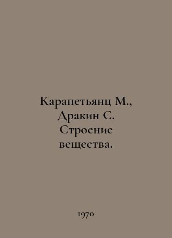 Karapetyants M., Drakin S. Structure of matter. In Russian /Karapetyants M., Drakin S. Stroenie veshchestva. High School 1970..You are welcome to reach out to us for a detailed description of the copies currently available. Delivery of this book may take longer than usual including extended processing and pre-shipping time, no expedited shipping is available. Please advise us if you have a set date or a deadline to receive your order. SKUalb78de246e0f8e9a71
