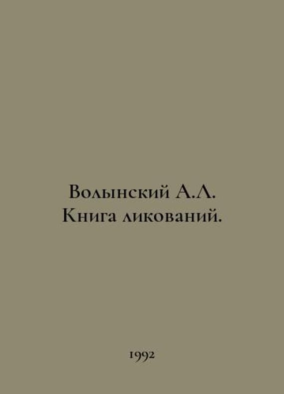 Volynsky A.L. The Book of Glee. In Russian /Volynskiy A.L. Kniga likovaniy. ABC of Classical Dance. M. Artist.Director. Theatre, 1992. 304s. We have thousands of titles and often several copies of each title may be available. Please feel free to contact us for a detailed description of the copies available. SKUalbf0cf0f32e849302d.