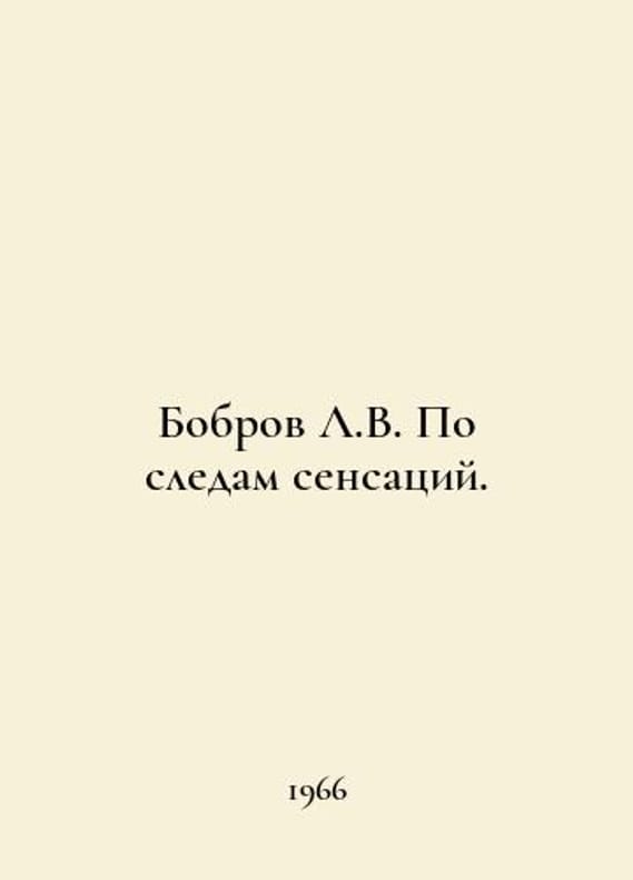 Bobrov L.V. Following in the footsteps of sensations. In Russian /Bobrov L.V. Po sledam sensatsiy. Series: Eureka M: The Young Guard 1966.You are welcome to reach out to us for a detailed description of the copies currently available. SKUalb7a795625aadee24c.