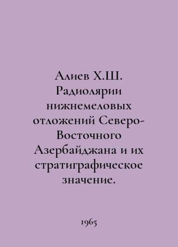 Aliyev H.S. Radiolariums of Lower Cretaceous sediments of Northeast Azerbaijan and their stratigraphic significance. In Russian /Aliev Kh.Sh. Radiolyarii nizhnemelovykh otlozheniy Severo-Vostochnogo Azerbaydzhana i ikh stratigraficheskoe znachenie. Baku Publishing House of Akad. sciences of the AzSSR 1965. You are welcome to reach out to us for a detailed description of the copies currently available. SKUalb7bcdea78cb9f7671.
