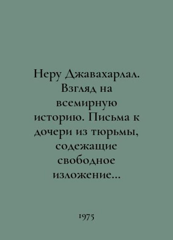 Nehru Jawaharlal. A look at world history: Letters to his daughter from prison, containing a free recitation of history for youth. In 3 volumes. In Russian /Neru Dzhavakharlal. Vzglyad na vsemirnuyu istoriyu: Pisma k docheri iz tyurmy, soderzhashchie svobodnoe izlozhenie istorii dlya yunoshestva. V 3-kh tomakh. Introductory article by R.A.Ulyanovsky, M. Progress 1981. You are welcome to reach out to us for a detailed description of the copies currently available. Delivery of this book may take longer than usual including extended processing and pre-shipping time, no expedited shipping is available. Please advise us if you have a set date or a deadline to receive your order.SKUalbfdedd7bb03932177