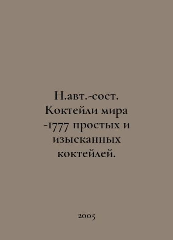 N.au. Cocktails of the World - 1777 simple and refined cocktails. In Russian /N.avt.-sost. Kokteyli mira -1777 prostykh i izyskannykh kokteyley. M. Union Public 2005..You are welcome to reach out to us for a detailed description of the copies currently available. Delivery of this book may take longer than usual including extended processing and pre-shipping time, no expedited shipping is available. Please advise us if you have a set date or a deadline to receive your order. SKUalb7e28c968e39dbc58