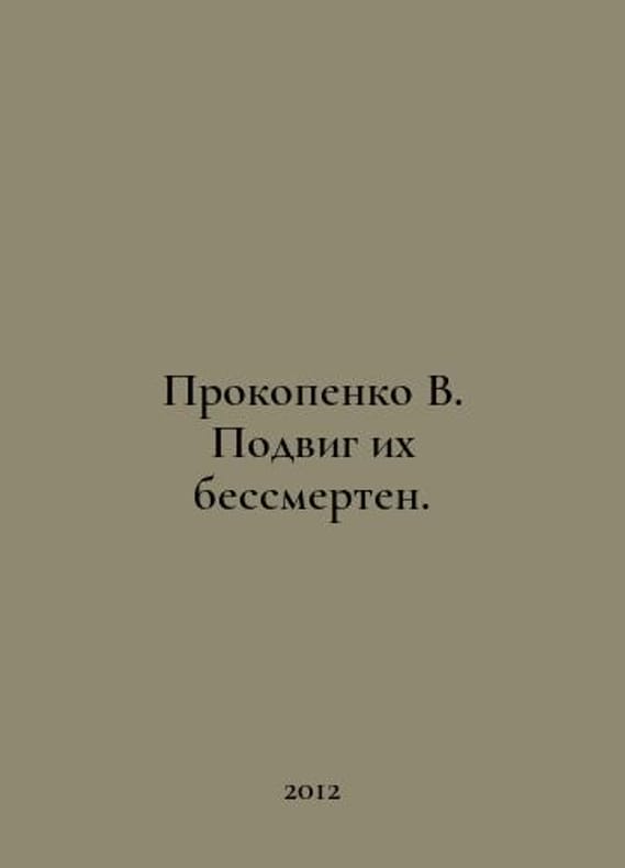 Prokopenko V. Their feat is immortal. In Russian /Prokopenko V. Podvig ikh bessmerten. Moscow 2012. You are welcome to reach out to us for a detailed description of the copies currently available. SKUalb7e95a6a12799ac3e.