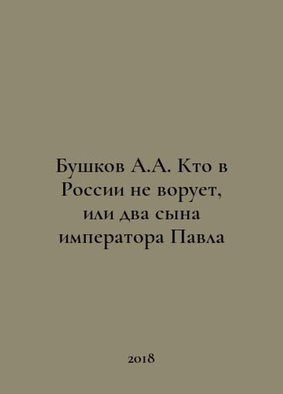 Bushkov A.A. Who in Russia does not steal, or the two sons of Emperor Paul In Russian /Bushkov A.A. Kto v Rossii ne voruet, ili dva syna imperatora Pavla M. House of Print of the Book Trade Publishers 2018. You are welcome to reach out to us for a detailed description of the copies currently available. SKUalb7e9bbdeafa27c3b4.