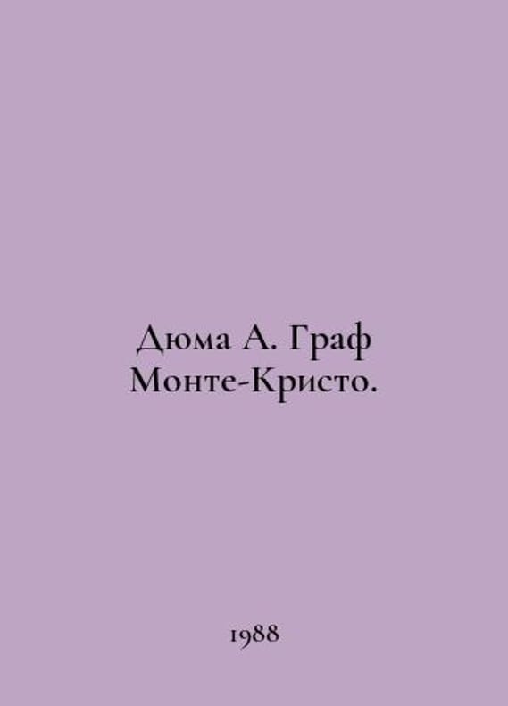 Dumas A. Count of Monte Cristo. In Russian /Dyuma A. Graf Monte-Kristo. A novel in two books. Book 1,2. Translation from French by K.V.Turenko to Dushanbe Maarif 1988. You are welcome to reach out to us for a detailed description of the copies currently available. Delivery of this book may take longer than usual including extended processing and pre-shipping time, no expedited shipping is available. Please advise us if you have a set date or a deadline to receive your order.SKUalb7eaea28c5e850bcd