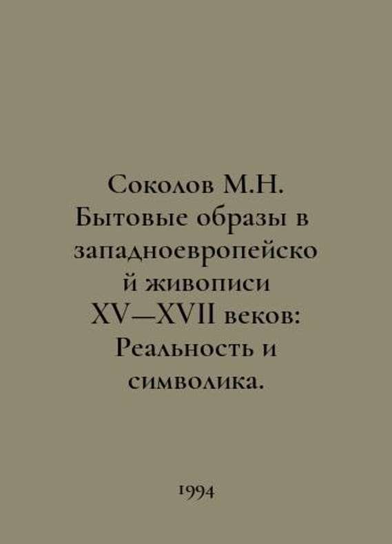 Sokolov M.N. Domestic Images in 15th and 17th Century Western European Painting: Reality and Symbolism. In Russian /Sokolov M.N. Bytovye obrazy v zapadnoevropeyskoy zhivopisi XV XVII vekov: Realnost i simvolika. Moscow: Fine Arts, 1994. You are welcome to reach out to us for a detailed description of the copies currently available. Delivery of this book may take longer than usual including extended processing and pre-shipping time, no expedited shipping is available. Please advise us if you have a set date or a deadline to receive your order.SKUalb7eb89003359bf858