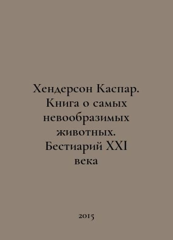 Henderson Caspar: A Book on the Most Inconceivable Animals. The Bestiary of the 21st Century In Russian /Khenderson Kaspar. Kniga o samykh nevoobrazimykh zhivotnykh. Bestiariy XXI veka M. Alpina Non-fiction 2015..You are welcome to reach out to us for a detailed description of the copies currently available. Delivery of this book may take longer than usual including extended processing and pre-shipping time, no expedited shipping is available. Please advise us if you have a set date or a deadline to receive your order. SKUalb80496cb506a0b323