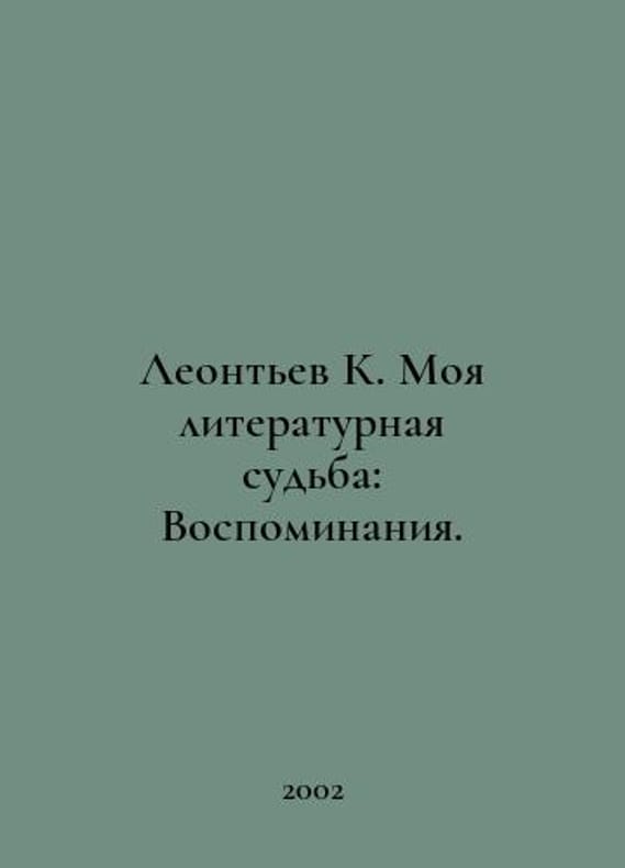Leontyev K. My literary destiny: Memories. In Russian /Leontev K. Moya literaturnaya sudba: Vospominaniya. Composition, introductory article, note by T. Prokopov. Series: Russian Memoirs. Moscow: Russian Book 2002. You are welcome to reach out to us for a detailed description of the copies currently available. Delivery of this book may take longer than usual including extended processing and pre-shipping time, no expedited shipping is available. Please advise us if you have a set date or a deadline to receive your order.SKUalb80cacfd0c03d595a