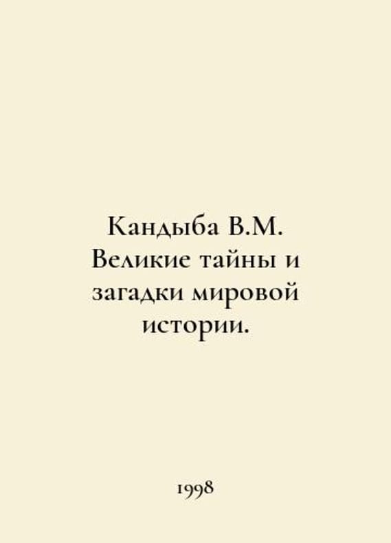 Candyba V.M. The great mysteries and riddles of world history. In Russian /Kandyba V.M. Velikie tayny i zagadki mirovoy istorii. St. Petersburg Nevsky Prospekt 1998. You are welcome to reach out to us for a detailed description of the copies currently available. SKUalb823529259bc15571.