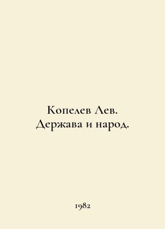 Leo Kopelev. Power and people. In Russian /Kopelev Lev. Derzhava i narod. Nne Arbor, Ardis, 1982. You are welcome to reach out to us for a detailed description of the copies currently available. Delivery of this book may take longer than usual including extended processing and pre-shipping time, no expedited shipping is available. Please advise us if you have a set date or a deadline to receive your order.SKUalb830c19ac1b74616a