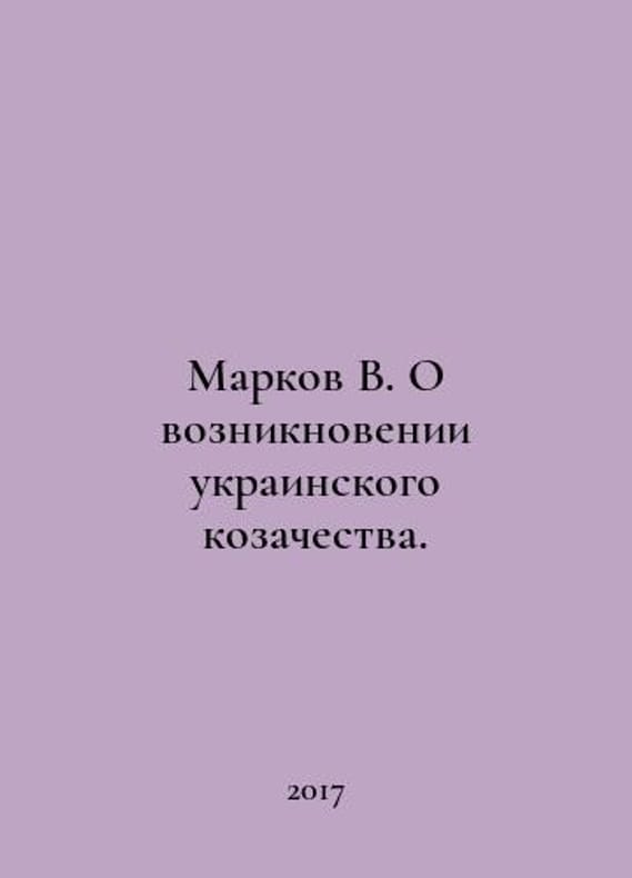 Markov V. On the emergence of the Ukrainian goat. In Russian /Markov V. O vozniknovenii ukrainskogo kozachestva. Saint Petersburg Eurasia 2017. You are welcome to reach out to us for a detailed description of the copies currently available. SKUalb834fa8a69a02f779.