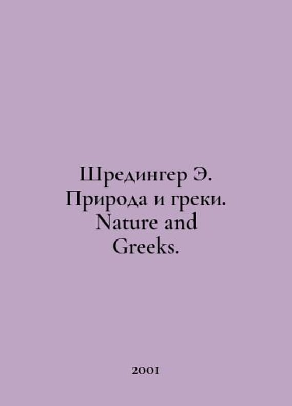 Schredinger E. Nature and the Greeks. Nature and Greeks. In Russian /Shredinger E. Priroda i greki. Nature and Greeks. Sherman lectures given at University College, London 24,26,28 and 31 May 1948. Translated from English by E.V. Bogatyreva. Under the editorship of N.A. Zubchenko. M.-Izhevsk, 2001.You are welcome to reach out to us for a detailed description of the copies currently available. SKUalb83772cf571e3cd61.