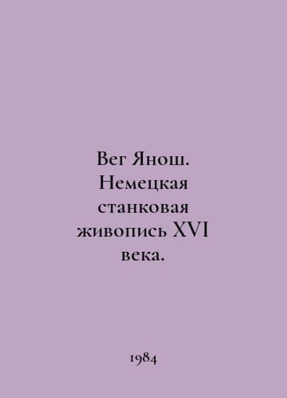 Veg Janos. 16th century German easel painting. In Russian /Veg Yanosh. Nemetskaya stankovaya zhivopis XVI veka. Translated from Hungarian by Sargin L. Hungary. Corvina. 1984. You are welcome to reach out to us for a detailed description of the copies currently available. SKUalb83a5bfb374cde427.