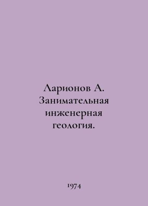 Larionov A. Occupational engineering geology. In Russian /Larionov A. Zanimatelnaya inzhenernaya geologiya. Larionov A. Occupational engineering geology. 1974.You are welcome to reach out to us for a detailed description of the copies currently available. Delivery of this book may take longer than usual including extended processing and pre-shipping time, no expedited shipping is available. Please advise us if you have a set date or a deadline to receive your order. SKUalb83f3d95a10d13901