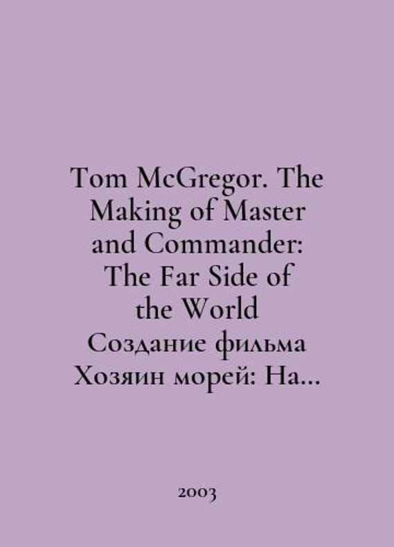 Tom McGregor: The Making of Master and Commander: The Far Side of the World Making the film Master of the Seas: At the Edge of the Earth. In Russian /Tom McGregor. The Making of Master and Commander: The Far Side of the World Sozdanie filma Khozyain morey: Na krayu zemli. In English W.W.Norton 2003. You are welcome to reach out to us for a detailed description of the copies currently available. SKUalb844ee929c20c1978.