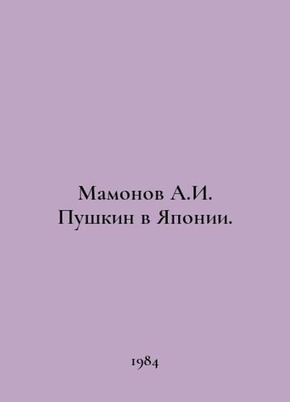 Mamonov A.I. Pushkin in Japan. In Russian /Mamonov A.I. Pushkin v Yaponii. M Science 1984. Contact us for details or to request photos of available books. Delivery of this book could take longer than normal due to additional handling time before shipping, and no rush delivery options are available. Please let us know if you have a specific date by which you need to receive your order. SKUalbaf7cb89252ed87ed