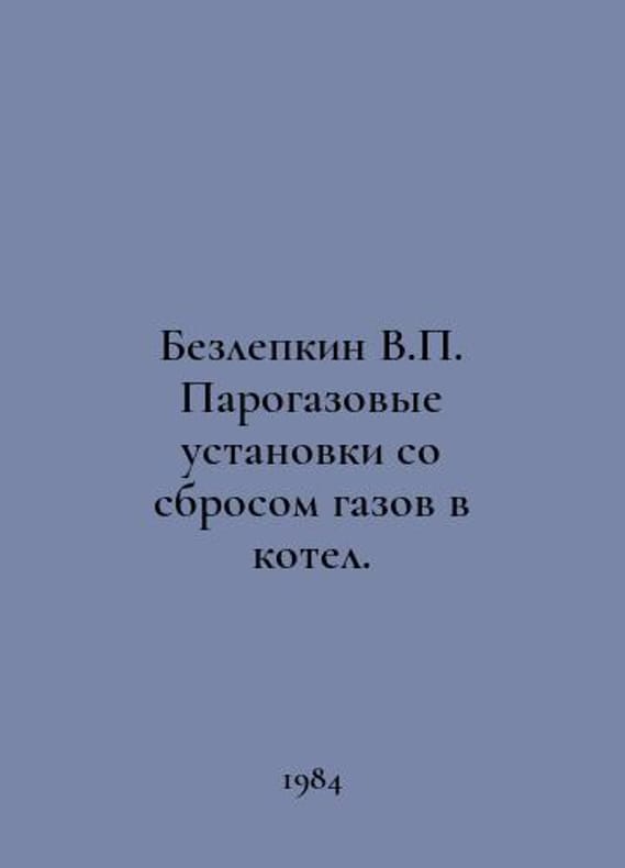 Beslepkin V. Steam-gas installations with the discharge of gases into the boiler. In Russian /Bezlepkin V. Parogazovye ustanovki so sbrosom gazov v kotel. Series: Fuel and Power Saving - Leninigrad Machine Building 1984.You are welcome to reach out to us for a detailed description of the copies currently available. SKUalb85f02fcf524d18f4.