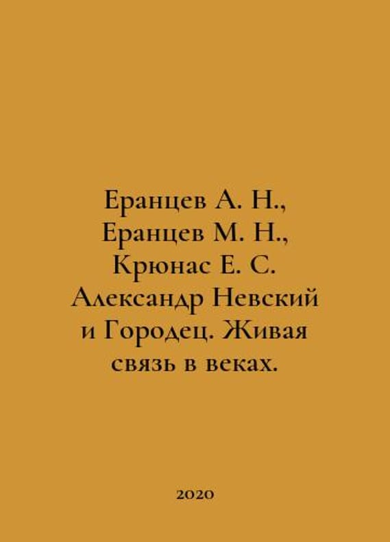 A. N. Yerantsev, M. N. Yerantsev, E. S. Kryunas, Alexander Nevsky and Gorodets In Russian /Erantsev A. N., Erantsev M. N., Kryunas E. S. Aleksandr Nevskiy i Gorodets. Zhivaya svyaz v vekakh. Edition 2, supplemented. Gorodets: GIHMK, MBUK Gorodetsky Historical and Art Museum Complex, 2020. 94 p. We have thousands of titles and often several copies of each title may be available. Please feel free to contact us for a detailed description of the copies available. SKUalb46faa02592b701a5.