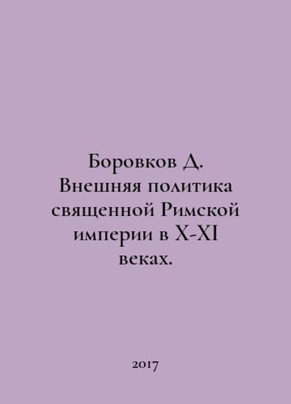 Borovkov D. The foreign policy of the Holy Roman Empire in the tenth and eleventh centuries. In Russian /Borovkov D. Vneshnyaya politika svyashchennoy Rimskoy imperii v X-XI vekakh. St. Petersburg from Alethea 2017..You are welcome to reach out to us for a detailed description of the copies currently available. Delivery of this book may take longer than usual including extended processing and pre-shipping time, no expedited shipping is available. Please advise us if you have a set date or a deadline to receive your order. SKUalb8739b8ee8481bcc2
