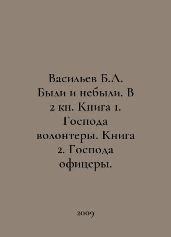 Vasiliev B.L. Were and were not. In Book 2. Book 1. Gentlemen Volunteers. Book 2. Gentlemen Officers. In Russian /Vasilev B.L. Byli i nebyli. V 2 kn. Kniga 1. Gospoda volontery. Kniga 2. Gospoda ofitsery. M. PROZAIK 2009. You are welcome to reach out to us for a detailed description of the copies currently available. Delivery of this book may take longer than usual including extended processing and pre-shipping time, no expedited shipping is available. Please advise us if you have a set date or a deadline to receive your order.SKUalb884110f1300fba9c