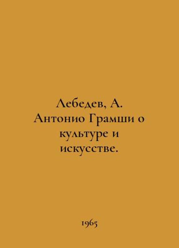 Lebedev, A. Antonio Gramsci about culture and art. In Russian /Lebedev, A. Antonio Gramshi o kulture i iskusstve. M Art 1965. You are welcome to reach out to us for a detailed description of the copies currently available. Delivery of this book may take longer than usual including extended processing and pre-shipping time, no expedited shipping is available. Please advise us if you have a set date or a deadline to receive your order.SKUalb886ae80370d68865