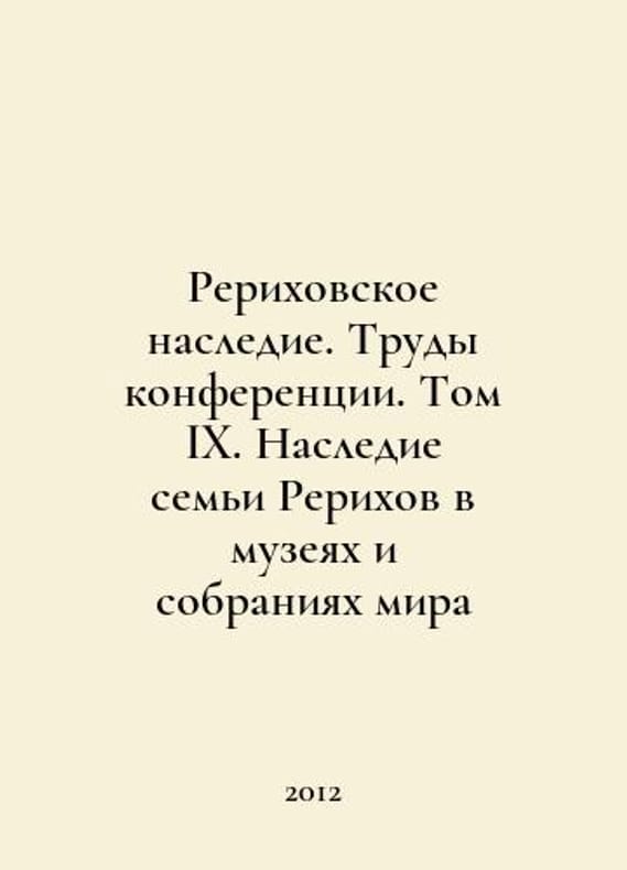 The Roerich Legacy. Proceedings of the Conference. Volume IX. The Legacy of the Roerich Family in the Museums and Collections of the World In Russian /Rerikhovskoe nasledie. Trudy konferentsii. Tom IX. Nasledie semi Rerikhov v muzeyakh i sobraniyakh mira St. Petersburg Rerikhov Center of St. Petersburg State University 2012. You are welcome to reach out to us for a detailed description of the copies currently available. Delivery of this book may take longer than usual including extended processing and pre-shipping time, no expedited shipping is available. Please advise us if you have a set date or a deadline to receive your order.SKUalb889f5fbf593375b7