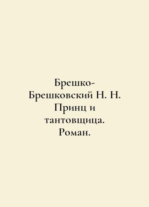 Bresko-Breskovsky N. N. Prince and the Dancer. Roman. In Russian /Breshko-Breshkovskiy N. N. Prints i tantovshchitsa. Roman. Moscow Publishing House V. Sekachev 2021. 150 s. You are welcome to reach out to us for a detailed description of the copies currently available. Delivery of this book may take longer than usual including extended processing and pre-shipping time, no expedited shipping is available. Please advise us if you have a set date or a deadline to receive your order.SKUalb898dd1b9b35d4457