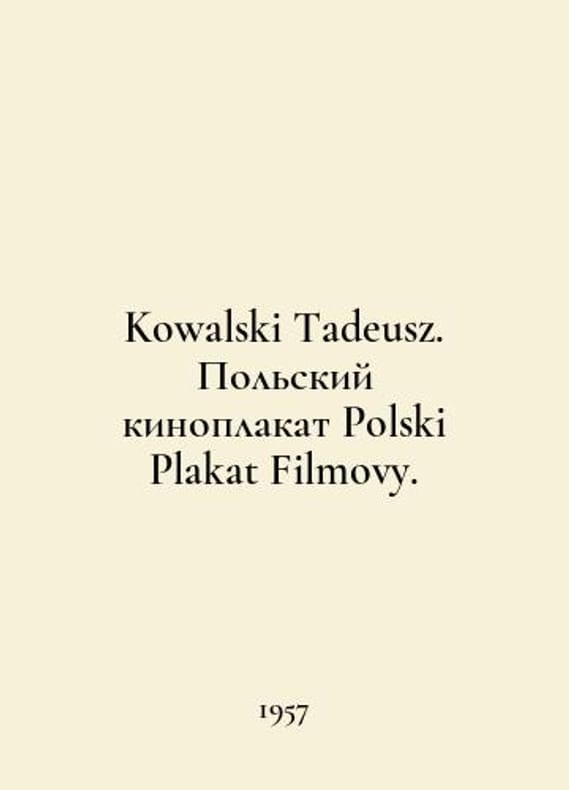 Kowalski Tadeusz. Polish film poster Polski Plakat Filmovy. In Russian /Kowalski Tadeusz. Polskiy kinoplakat Polski Plakat Filmovy. Warsaw Filmowa Agency Wydawnicza 1957. You are welcome to reach out to us for a detailed description of the copies currently available. SKUalb8b026d08f2d0d3b0.