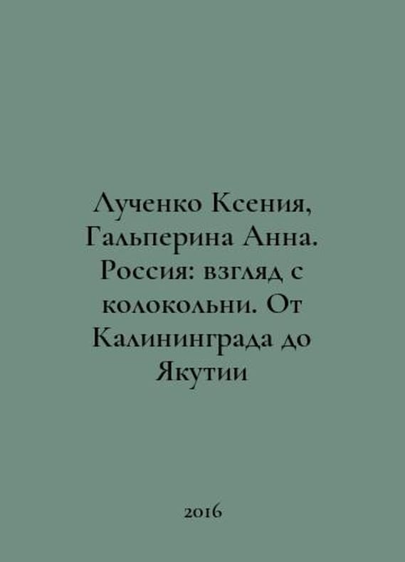 Luchenko Ksenia, Anna Halperina. Russia: view from the bell tower. From Kaliningrad to Yakutia In Russian /Luchenko Kseniya, Galperina Anna. Rossiya: vzglyad s kolokolni. Ot Kaliningrada do Yakutii M. Nikkei 2016..You are welcome to reach out to us for a detailed description of the copies currently available. Delivery of this book may take longer than usual including extended processing and pre-shipping time, no expedited shipping is available. Please advise us if you have a set date or a deadline to receive your order. SKUalb8b1bb63b10607e8b