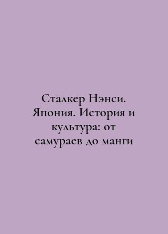 Stalker Nancy. Japan: History and Culture: From Samurai to Manga In Russian /Stalker Nensi. Yaponiya. Istoriya i kultura: ot samuraev do mangi Moscow Alpina non-fiction 2020. 584 p.We have thousands of titles and often several copies of each title may be available. Please feel free to contact us for a detailed description of the copies available.SKUalb13c3769e2cb904f2.