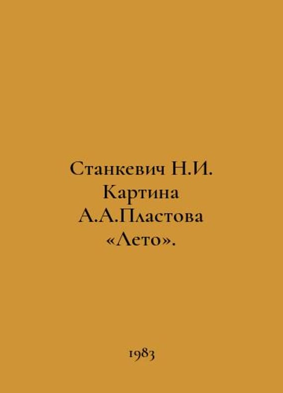 Stankevich N.I. Plastovs painting Summer. In Russian /Stankevich N.I. Kartina A.A.Plastova Leto. A story about a work. L Artist of the RSFSR 1983. You are welcome to reach out to us for a detailed description of the copies currently available. Delivery of this book may take longer than usual including extended processing and pre-shipping time, no expedited shipping is available. Please advise us if you have a set date or a deadline to receive your order.SKUalb8b91853ec1b51eb4