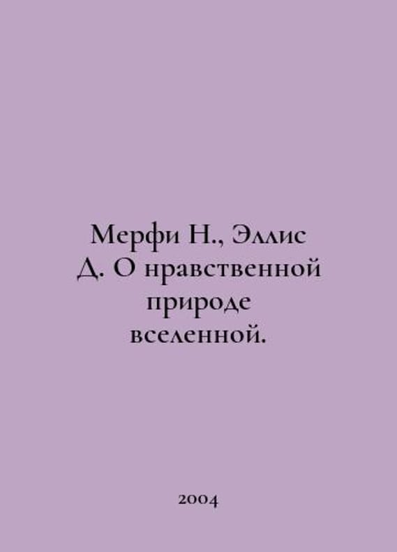 Murphy N., Ellis D. On the moral nature of the universe. In Russian /Merfi N., Ellis D. O nravstvennoy prirode vselennoy. Theology, Cosmology and Ethics. M BBI. 2004..You are welcome to reach out to us for a detailed description of the copies currently available. Delivery of this book may take longer than usual including extended processing and pre-shipping time, no expedited shipping is available. Please advise us if you have a set date or a deadline to receive your order. SKUalb8bf0094dc990cf90