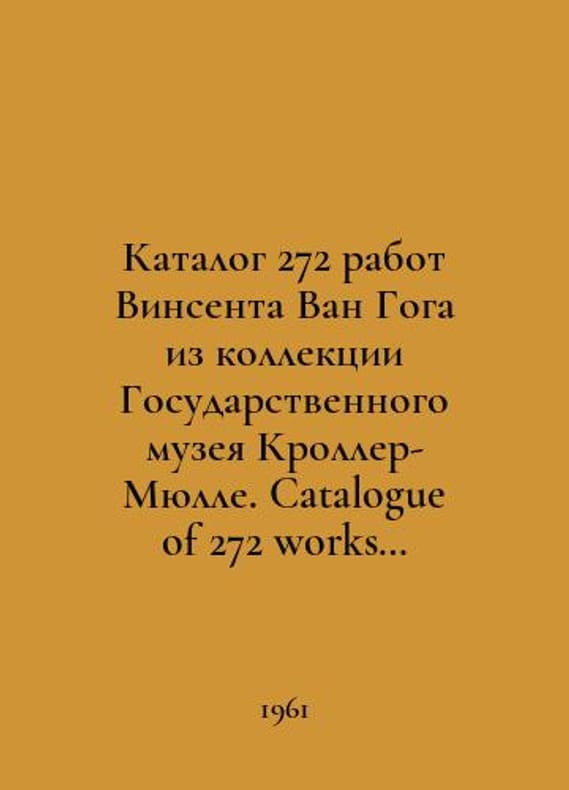 Catalogue of 272 works by Vincent van Gogh from the collection of the Kroller-Mulle State Museum. Catalogue of 272 works by Vincent van Gogh belongs to the collection of the State Museum Kroller-Mulle. In Russian /Katalog 272 rabot Vinsenta Van Goga iz kollektsii Gosudarstvennogo muzeya Kroller-Myulle. Catalogue of 272 works by Vincent van Gogh belonging to the collection of the State Museum Kroller-Mulle. Catalogue of 272 works by Vincent van Gogh from the collection of the State Museum Kroller-Mulle. Catalogue of 272 works by Vincent van Gogh relating to the collection of the State Museum Kroller-Mulle. 1961. You are welcome to reach out to us for a detailed description of the copies currently available. SKUalb8d52a9213203ba0f.