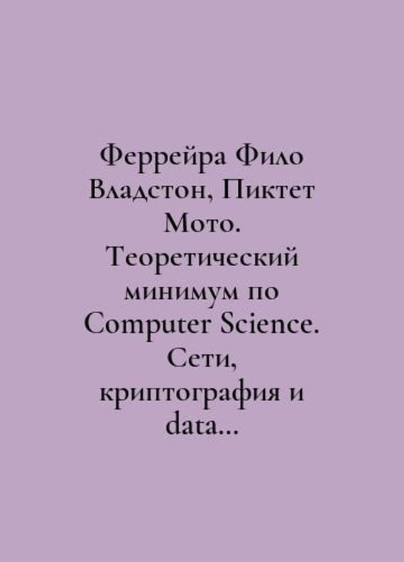Ferreira Filo Vladston, Pictet Moto. The theoretical minimum by Computer Science. Networks, cryptography and data science In Russian /FerreyraFiloVladston,PiktetMoto. Teoreticheskiy minimum po Computer Science. Seti,kriptografiyai data science St. Petersburg PETER 2022 286s. You are welcome to reach out to us for a detailed description of the copies currently available. SKUalb8e837e8ec1eef35a.