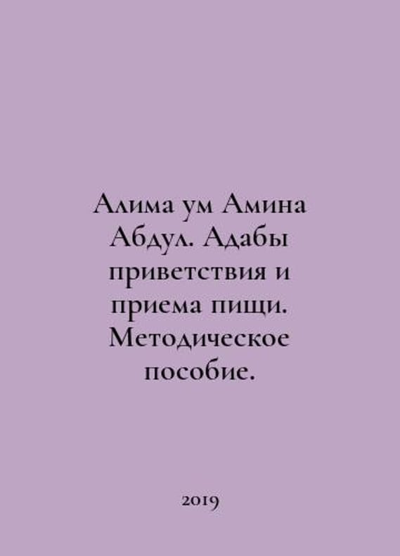 Alima Um Amin Abdul. Adabs of greeting and eating. Methodological guide. In Russian /Alima um Amina Abdul. Adaby privetstviya i priema pishchi. Metodicheskoe posobie. Series: First lessons in Islamic etiquette. Artist A. Nyagel. Kazan. Umma-Land. 2019. You are welcome to reach out to us for a detailed description of the copies currently available. Delivery of this book may take longer than usual including extended processing and pre-shipping time, no expedited shipping is available. Please advise us if you have a set date or a deadline to receive your order.SKUalb8e8687b170f322b5
